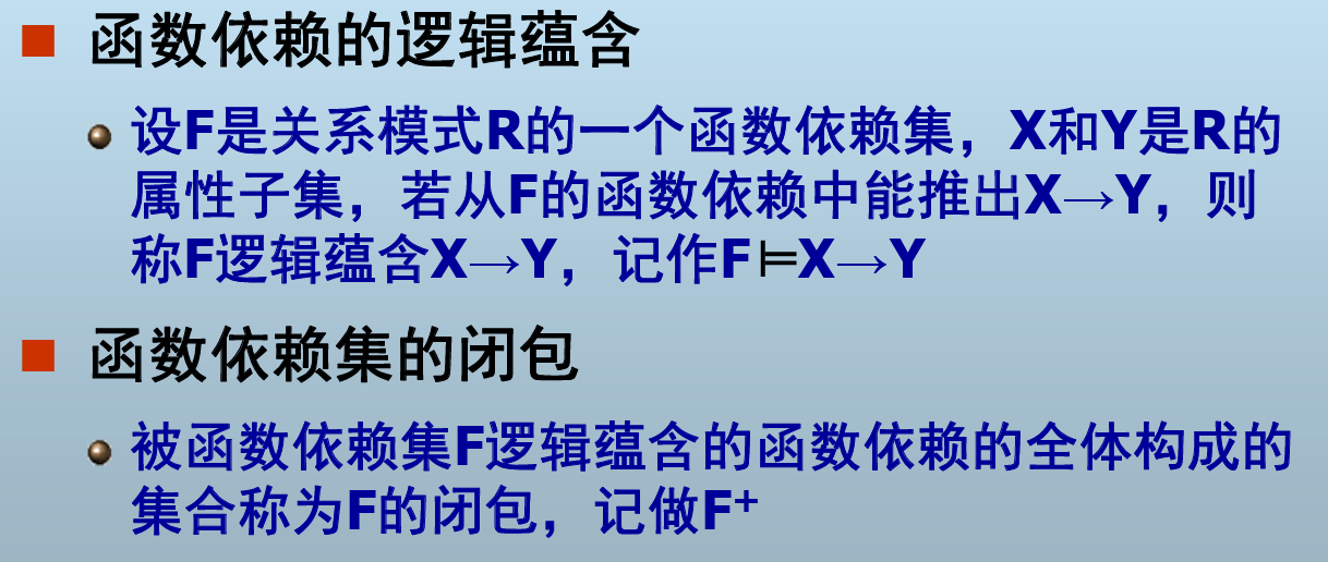 逻辑蕴含和闭包(通俗理解,函数依赖集的闭包就是全部的能推出来的函数依赖)