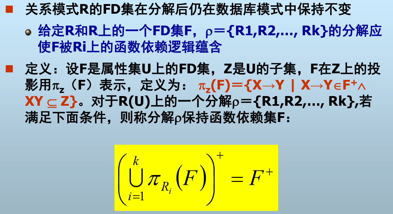 - 函数依赖集的分解