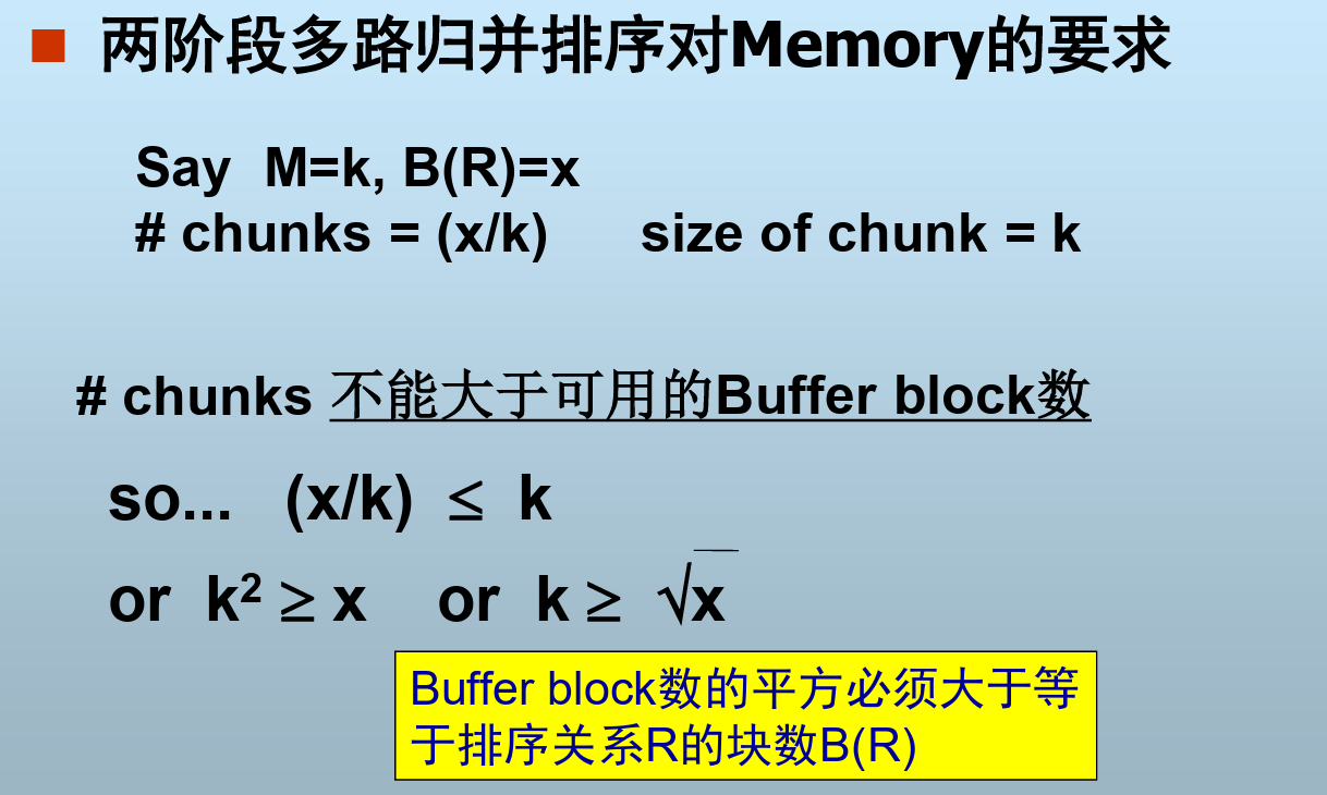 JOIN的需求:一个桶中的块数 + 1 <= 内存块数